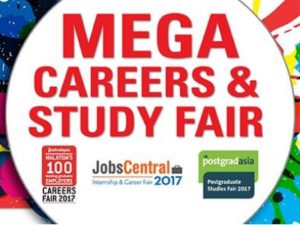Mega Careers & Study Fair 2017 will see 3 other fairs being held concurrently, ie, Malaysia’s 100 Careers Fair, JobCentral Career Fairpostgradasia Postgraduate Studies Fair.